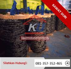 Kawat duri bwg 14 galvanis hotdeep panjang 60-70M dan berat satu roll 8kg.